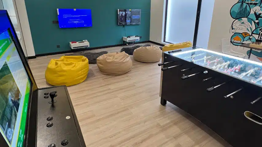 Find balance between focus and rest in the recreational area. The open and lively environment encourages conversation, relaxation, and creative thinking, making one day pass more enjoyable.